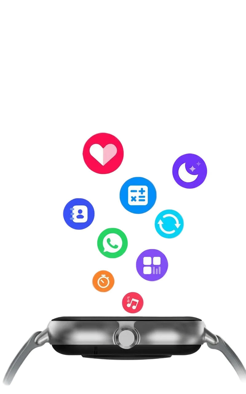 Papier peint personnalisé, appel Bluetooth, contrôle de la musique, rappel de message d'application sociale, rappel d'appel entrant, rappel SMS, multi-exercices, rappel de réveil, rappel de sédentarité, recherche de téléphone portable, lecture de musique, chronomètre, comptage de pas, distance, calories, surveillance du sommeil, surveillance de la fréquence cardiaque, tension artérielle, oxygène dans le sang, recherche d'équipements, changement de langue et lever la main pour éclairer l'écran.